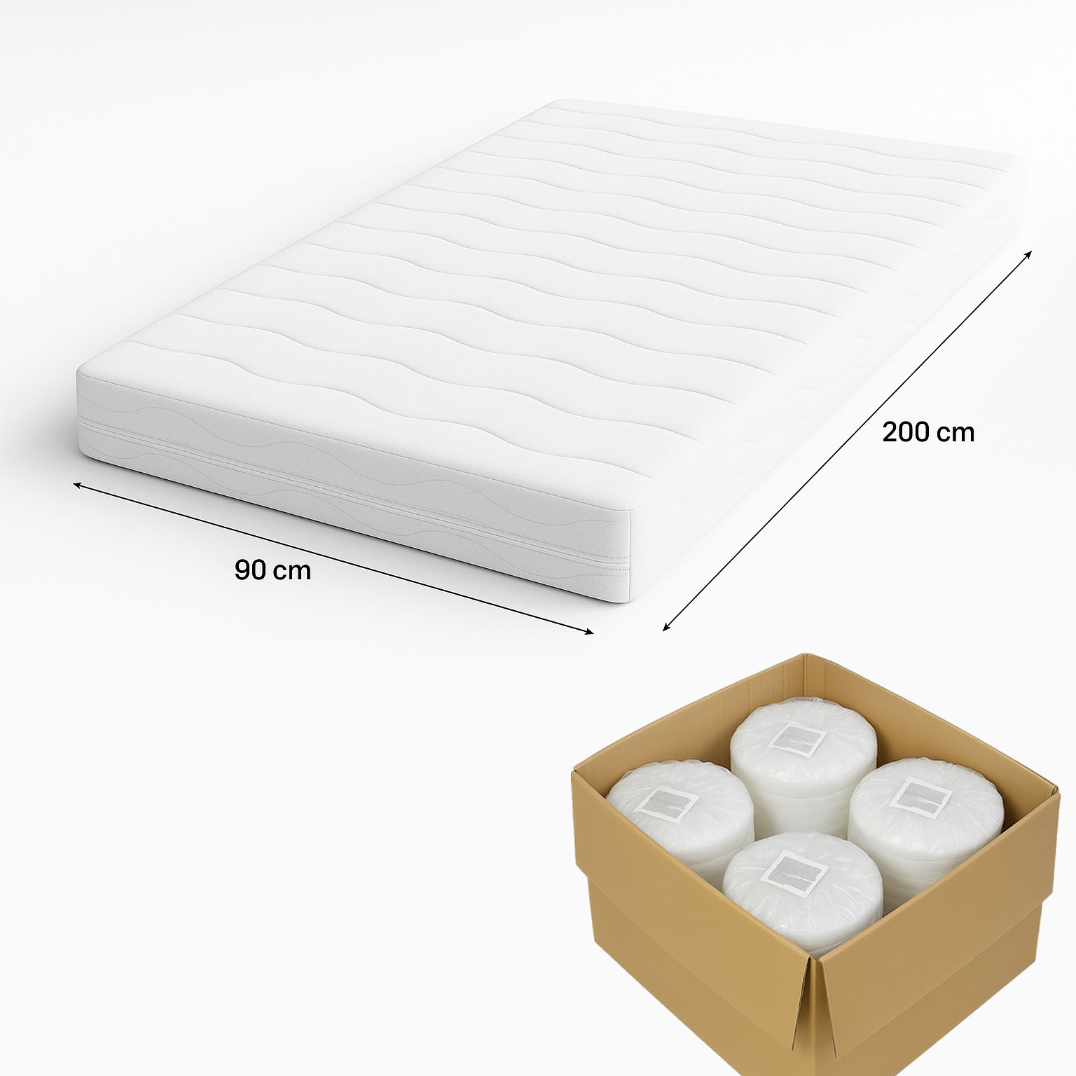 Ideal geeignet für Pensionen, Ferienwohnungen, Monteurunterkünfte, Boardinghouses und ähnliche Einsatzbereiche: Diese komfortable Matratze mit 12,2 cm hohem 7-Zonen-Wellenkern kommt dank praktischer Microverpackung im 4er-Versandkarton (60 × 60 × 60 cm) bequem per DHL – ganz ohne Spedition oder Sperrgut.