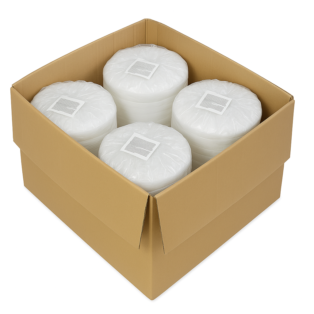 Vier Matratzen werden gerollt, gefaltet und vakuumiert, sodass sie in einem DHL-Paket (60 × 60 × 60 cm) zugestellt werden können.